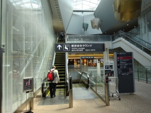 国際線乗り継ぎの出国手続きを終えて外に出ると、すぐにANAのラウンジへと続くエスカレーターが見えます。