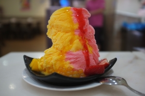 マンゴーとストロベリーがハーフ&ハーフになったスノーアイスは6.5$。