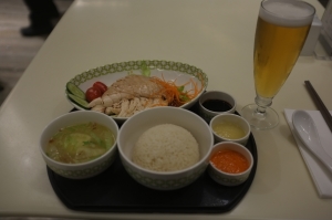チキンライスが27$(2,000円程度)。ホーカーズで食べれば5$くらいでも、お店によって美味しいチキンライスを食べられるので正直ないな~と思いました。(ビールも15$します)