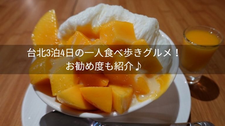先日、台北に3泊4日で一人グルメ旅行してきました! 台湾と言えば美食の国。20年近く前にトランジットで1泊だけした時以来の台北で、何をどこで食べるかものすごく迷いましたが、いろいろ調べたり教えてもらったりして食べたグルメ … 続きを読む 台北3泊4日の一人食べ歩きグルメ!お勧め度も紹介♪